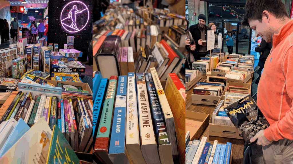 Bring your new and gently used books to CFLC, then shop the sale in their taproom. With pizza, burgers, and ice cream within walking distance, it’s a great location for a night out with books!